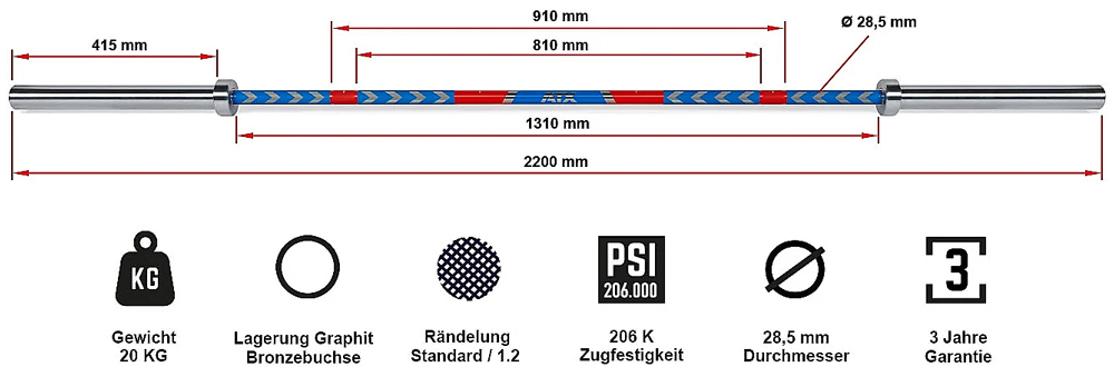 - 2-fache Griffweitenmarkierung Powerlifting/Weightlifting
