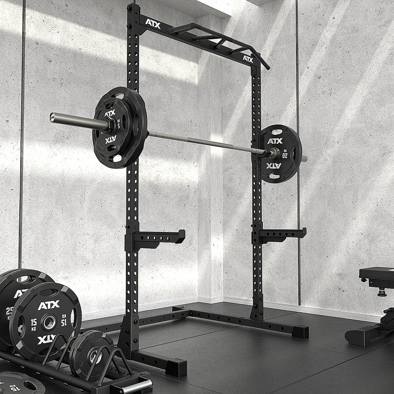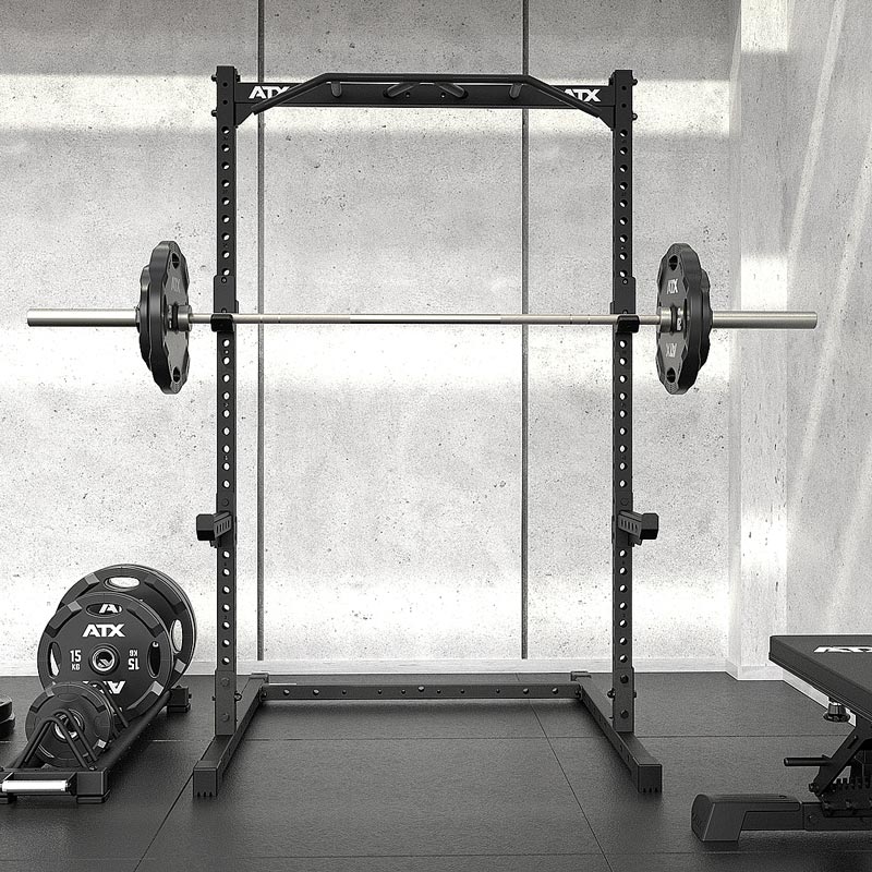 Das ATX® Half Rack HRX-510 ist die ideale Wahl für ambitionierte Athletinnen und Athleten, die auf begrenztem Raum ein professionelles Krafttraining absolvieren möchten. Mit einer kompakten Bauhöhe von nur 195 cm eignet sich das Rack perfekt für niedrige Trainingsräume. Die stabile Konstruktion aus 50 x 50 x 2 mm starken Stahlrohr mit verstärkten Knotenblechen ist absolut verwindungsfrei und bis 400 kg schwer belastbar!