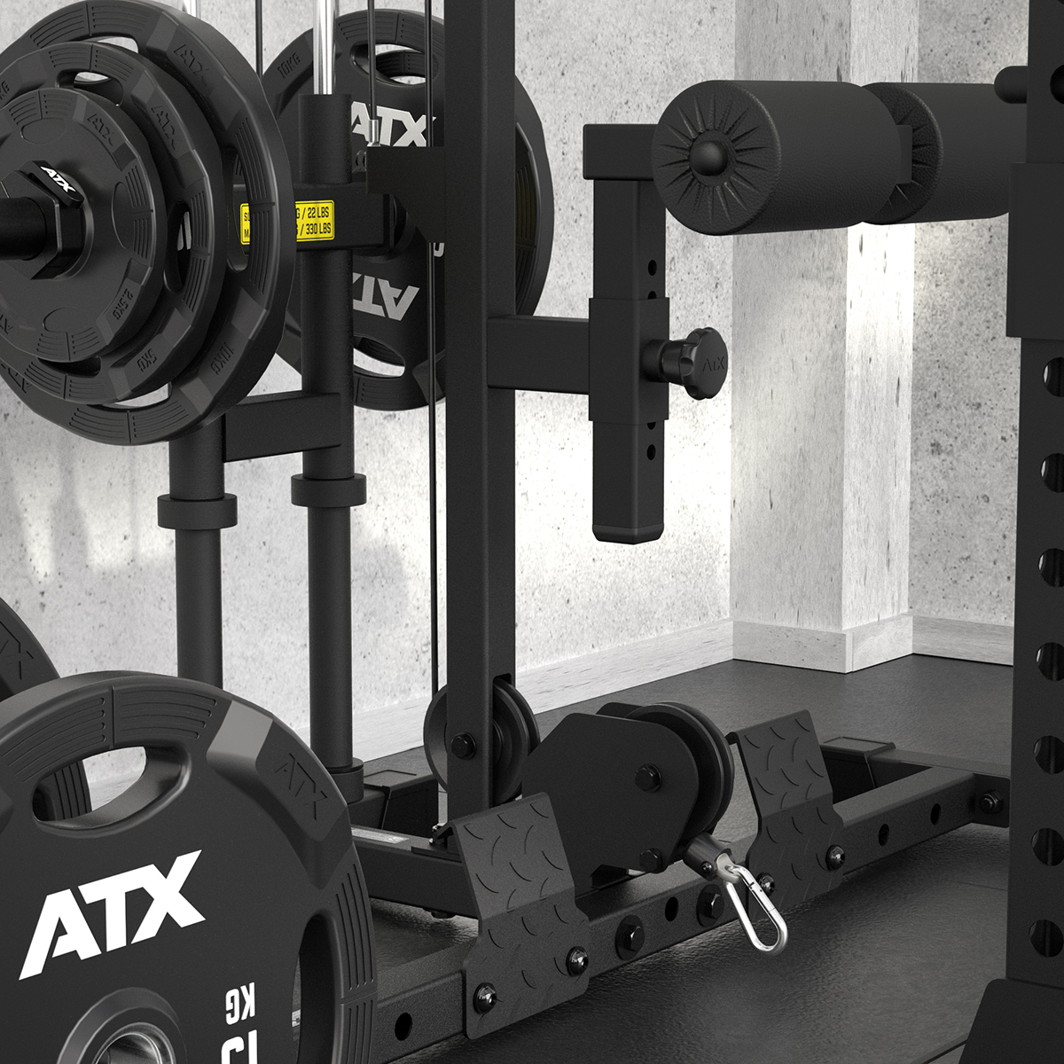- Extra tiefer Bodenrahmen ermöglicht die uneingeschränkte Ausführung von Flachbankdrücken und Schrägbankdrücken