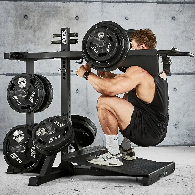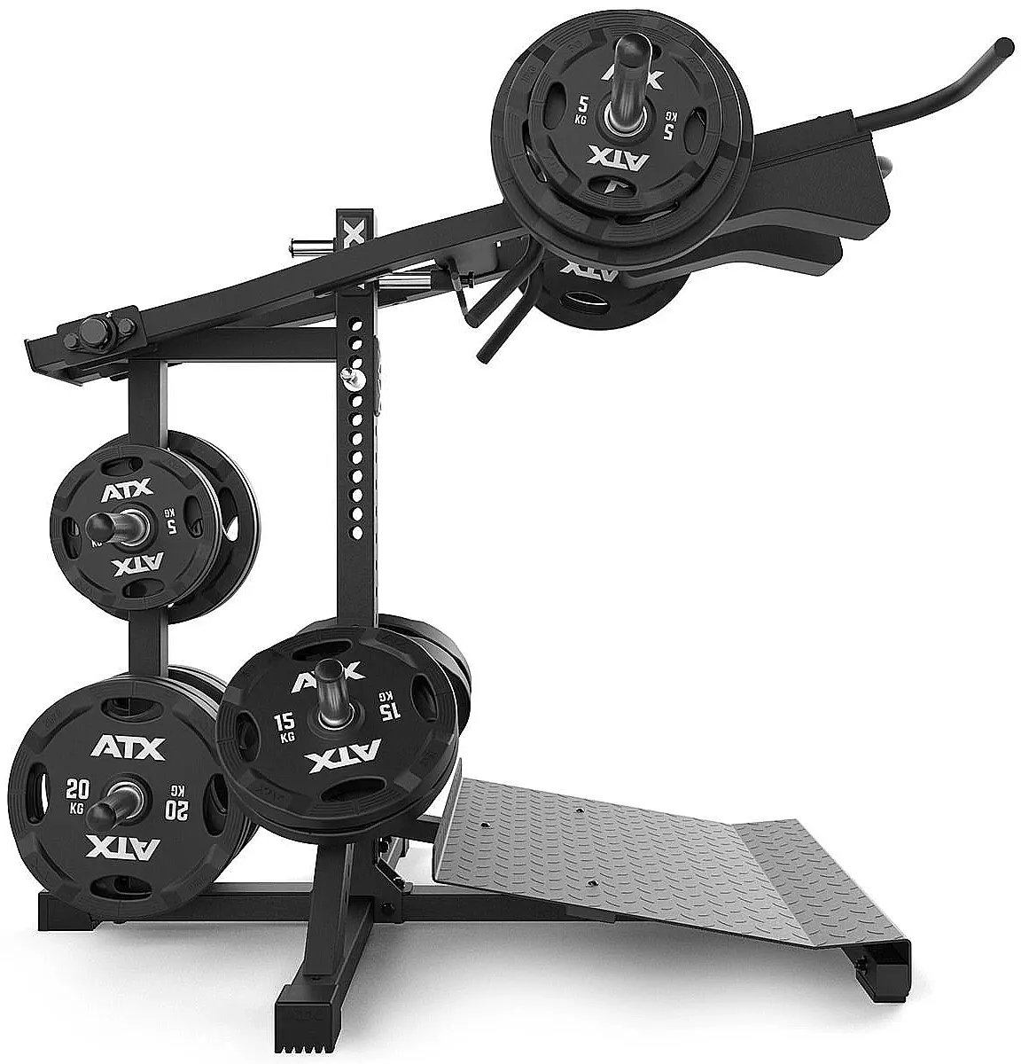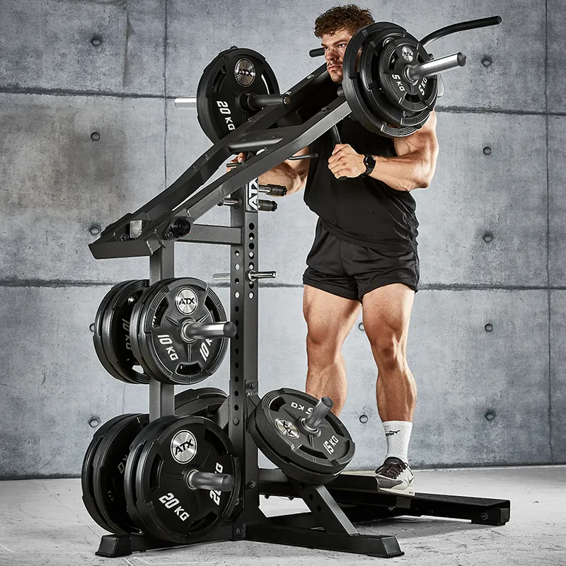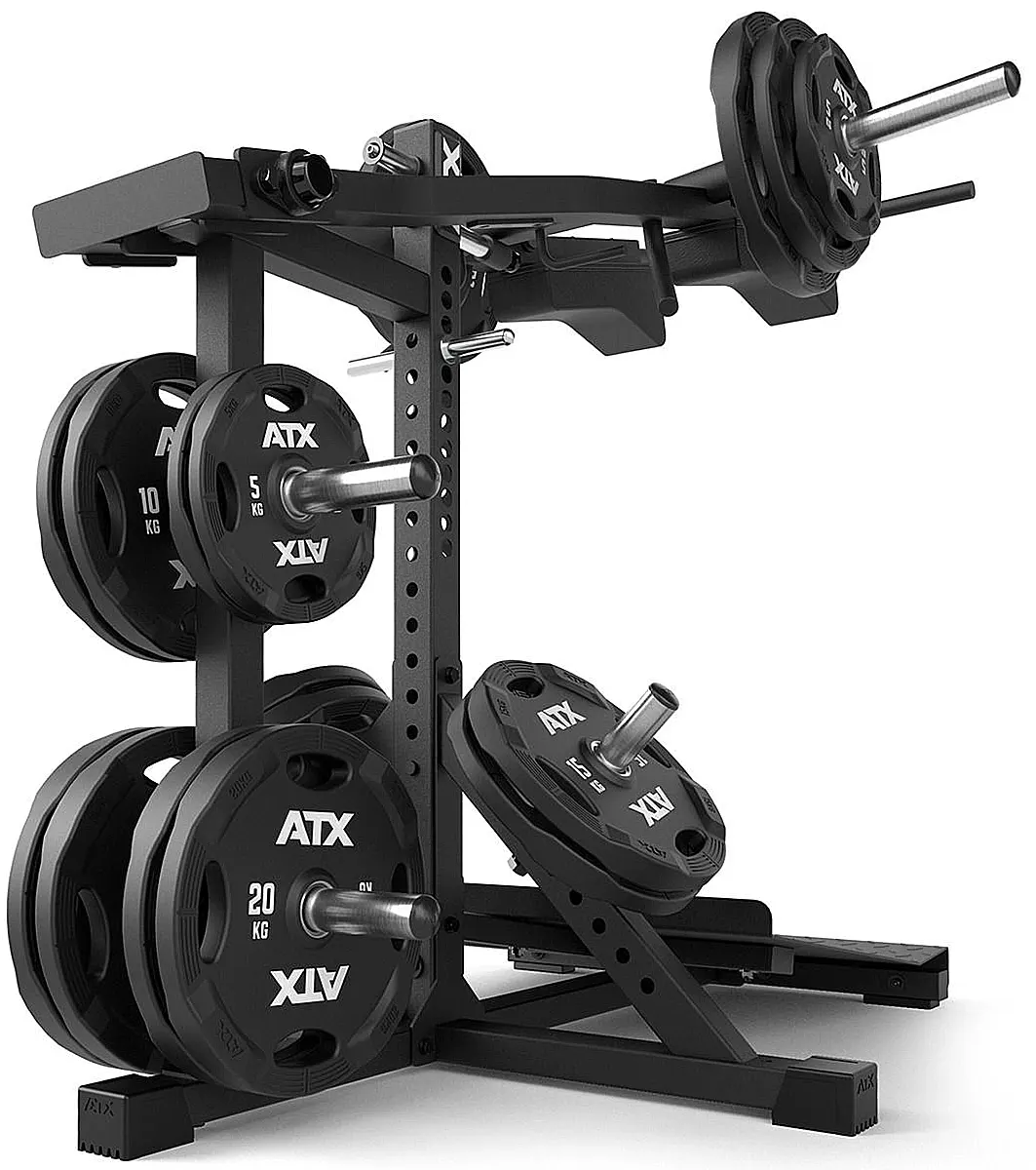 Die ATX® Lever Arm Squat PRO 3in1 ermöglicht nicht nur anatomisch korrekte schwere Kniebeugen und Wadenheben/stehend, sondern beinhaltet zusätzlich eine Viking Press, welche die wirkungsvolle Übungsvariante des Schulterdrückens effizient ermöglicht.