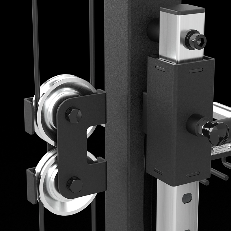 Kugelgekagerte doppelläufige Seilrollen bei der unteren und oberen Seilaufhängung gewähren ein einwandfreies Abgleiten des Seiles und minimieren somit den Abrieb oder die Beschädigung des Zugseiles