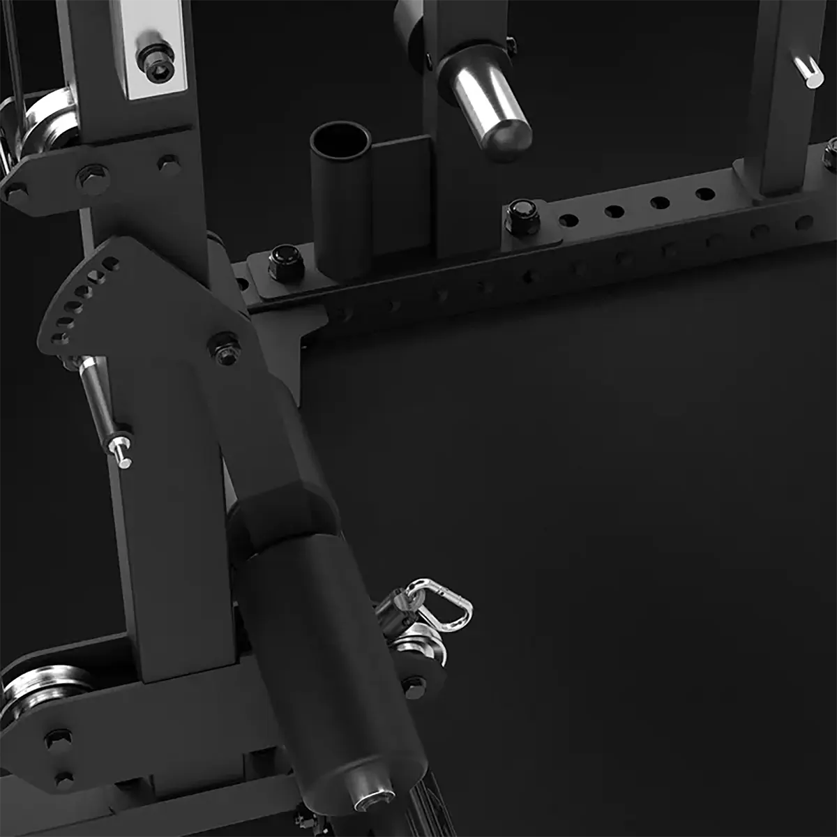 individuell höhenverstellbare und abklappbare Beinstütze - für eine sichere Fixierung bei schweren Zugübungen von Oben