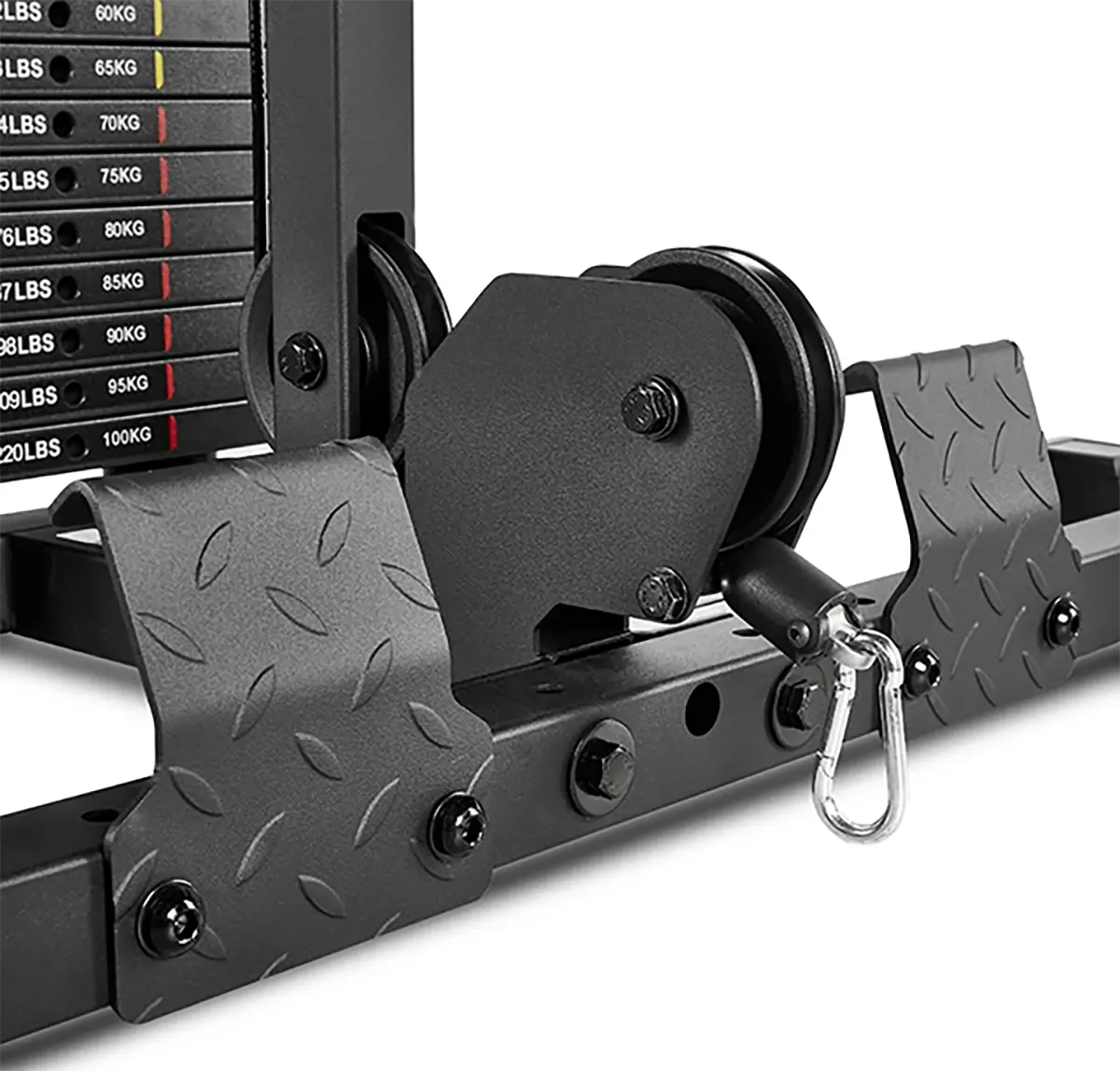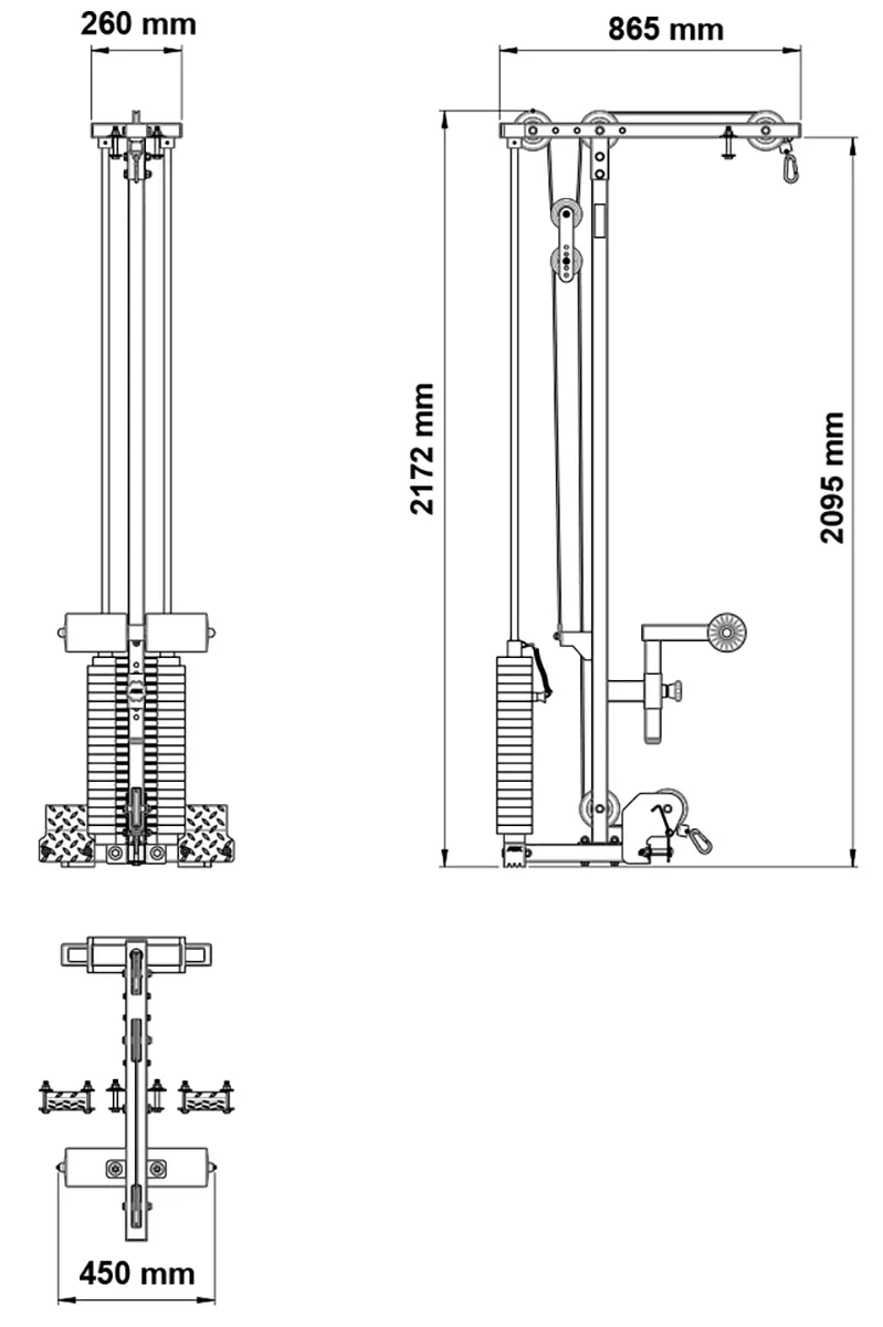 Seilrollen und die präzisen Steckgewichte mit Gleitbuchsenführung gewähren eine erstklassige seidenweiche Lauffunktion. Zwei