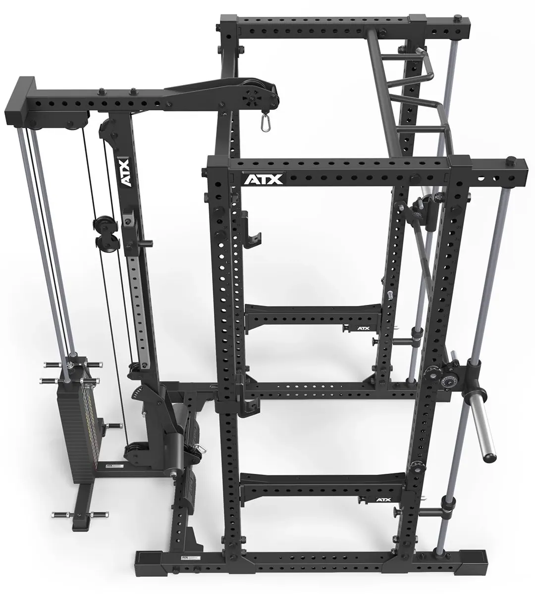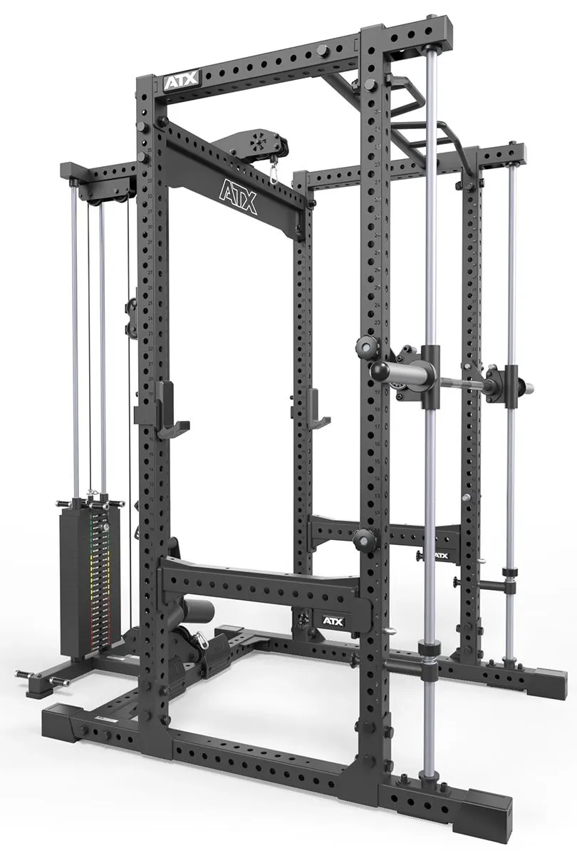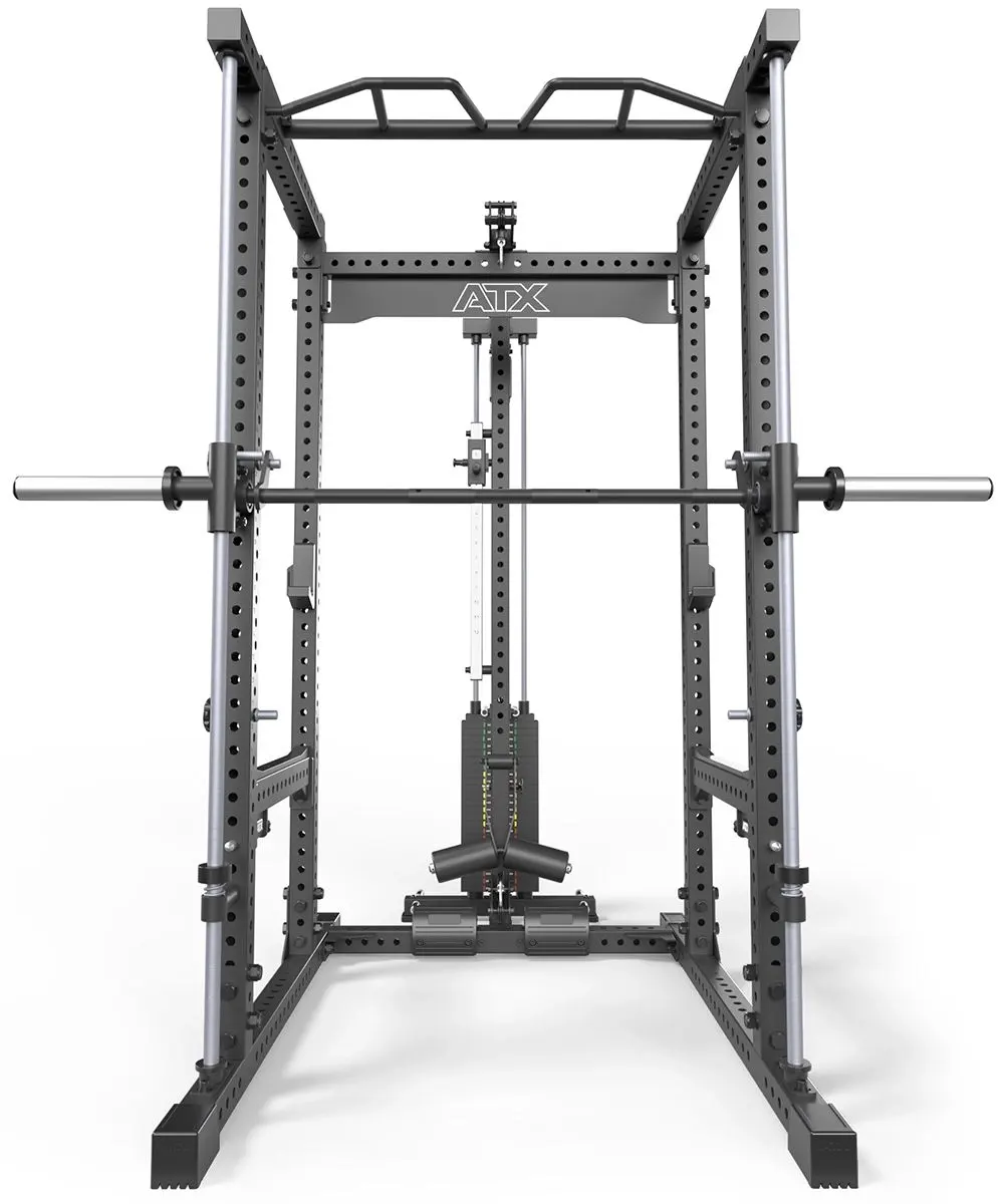 1 x ATX® Power Rack Komplettsystem mit Latzugstation 125 kg Steckgewichte + Multipresse
