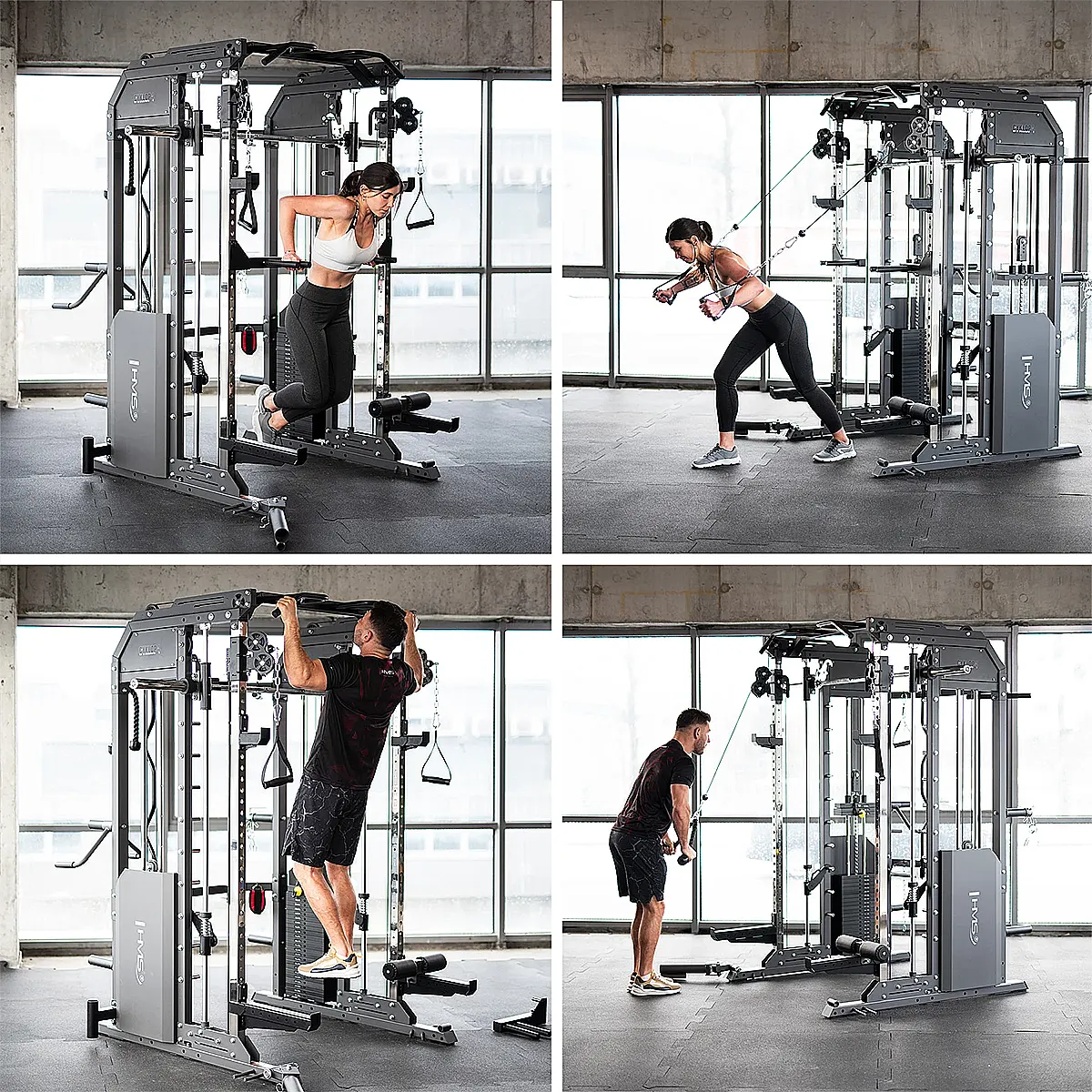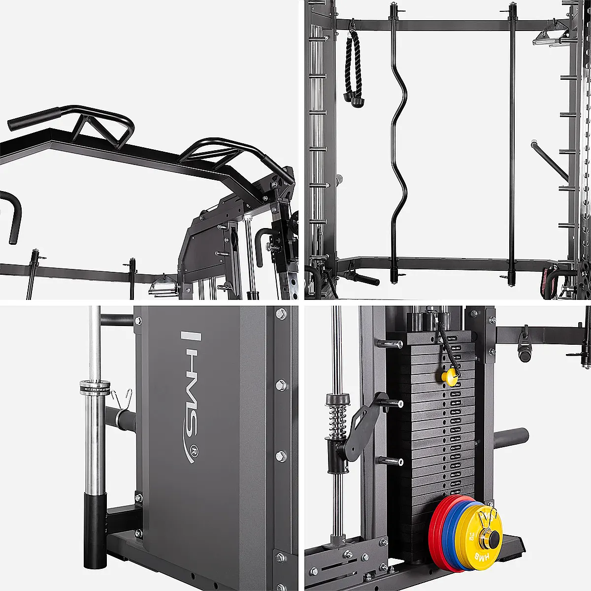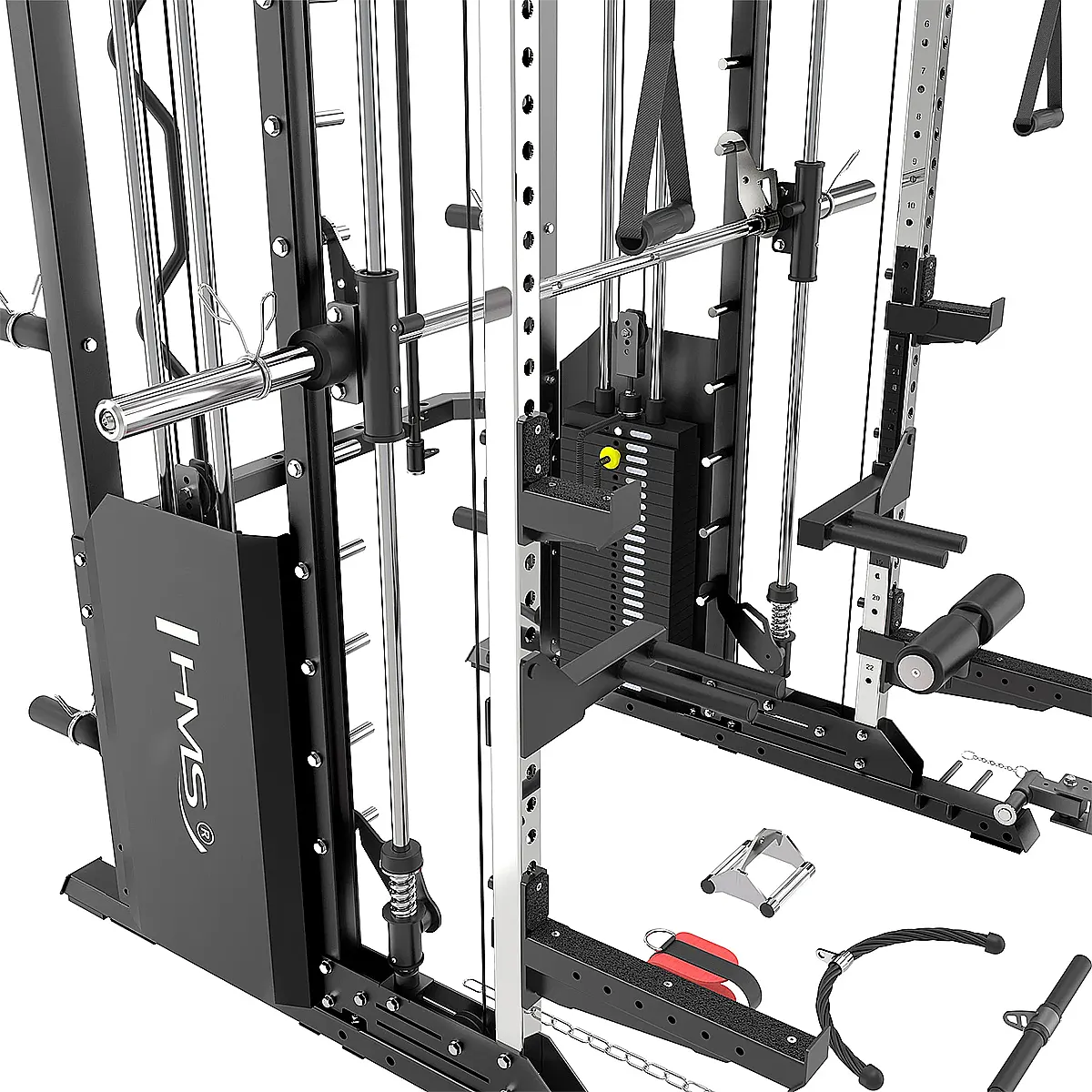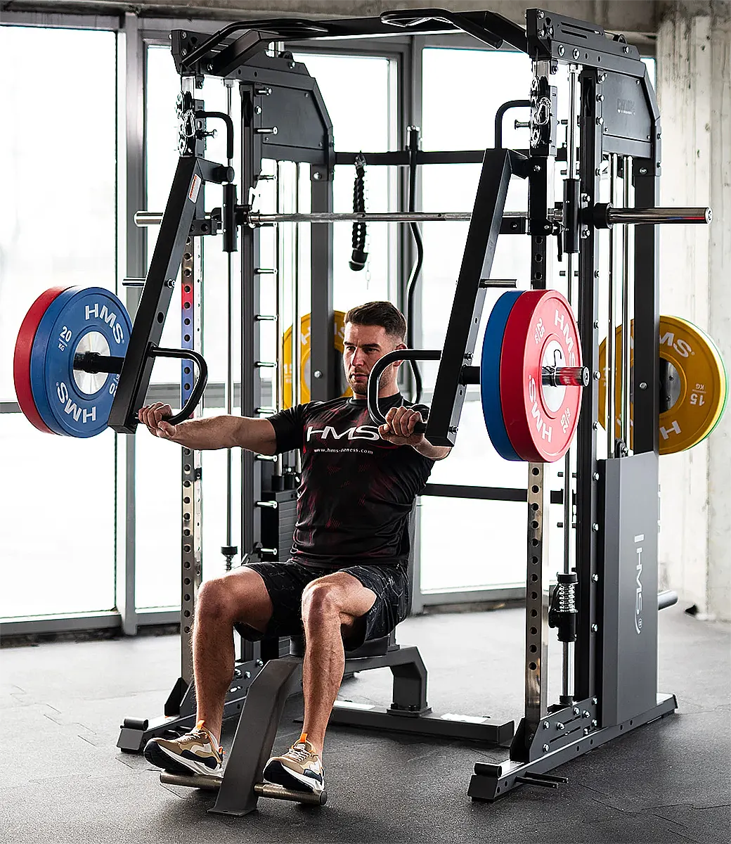 Der CYKLOP 4 von HMS vereint die Vorteile einer Multipresse (Smith Machine), einer vollwertigen Kraftstation und eines funktionalen Kabelzug-Systems – und bietet dir damit ein komplettes Fitnessstudio in nur einem Gerät.