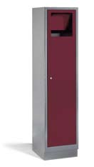 Die Evolo-Aufbewahrungsbox: Kommt unter der Straßen-/Berufskleidungsausführung zum Einsatz (= zwei Abteile für eine Person) und kann nur vom Schranknutzer geöffnet werden. Innen erschließt sie bisher ungenutzten Stauraum, außen bietet sie einen sauberen Bodenabschluss und reduziert die zu reinigende Bodenfläche erheblich!