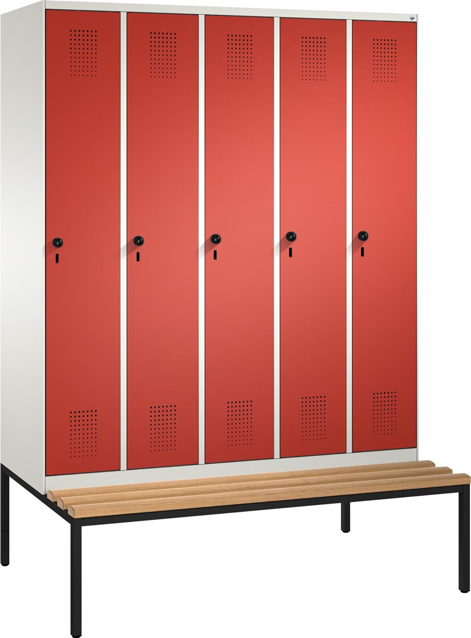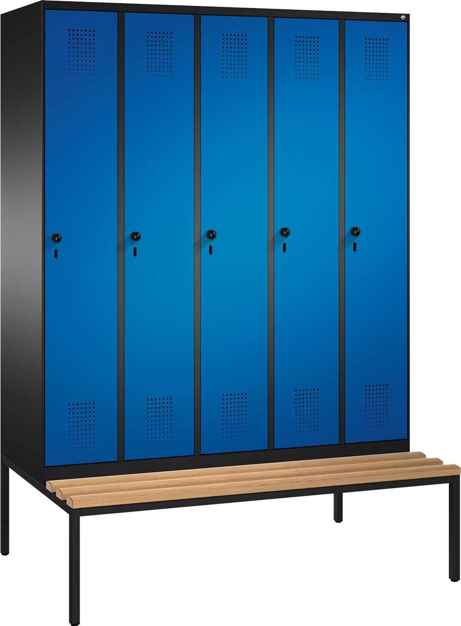 Garderobenschränke einteilig S 3000 EVOLO mit Sitzbank 5 Fächer mit 300 mm breiten Stahltüren