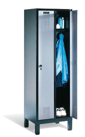Die Evolo-Aufbewahrungsbox: Kommt unter der Straßen-/Berufskleidungsausführung zum Einsatz (= zwei Abteile für eine Person) und kann nur vom Schranknutzer geöffnet werden. Innen erschließt sie bisher ungenutzten Stauraum, außen bietet sie einen sauberen Bodenabschluss und reduziert die zu reinigende Bodenfläche erheblich!