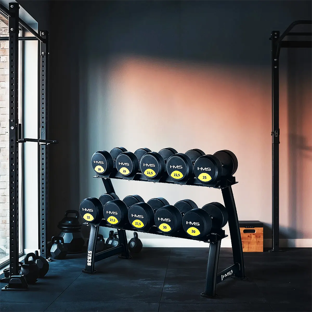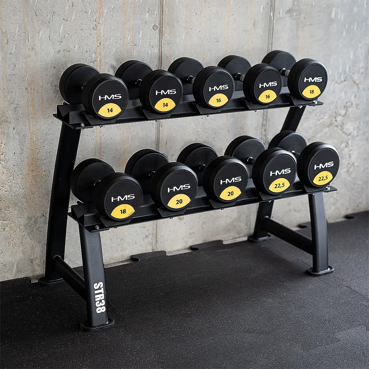 Der HMS STR38 ist ein kompakter, dennoch extrem stabiler Kurzhantelständer, der Ordnung, Sicherheit und schnellen Zugriff auf Ihr Trainingsequipment garantiert.