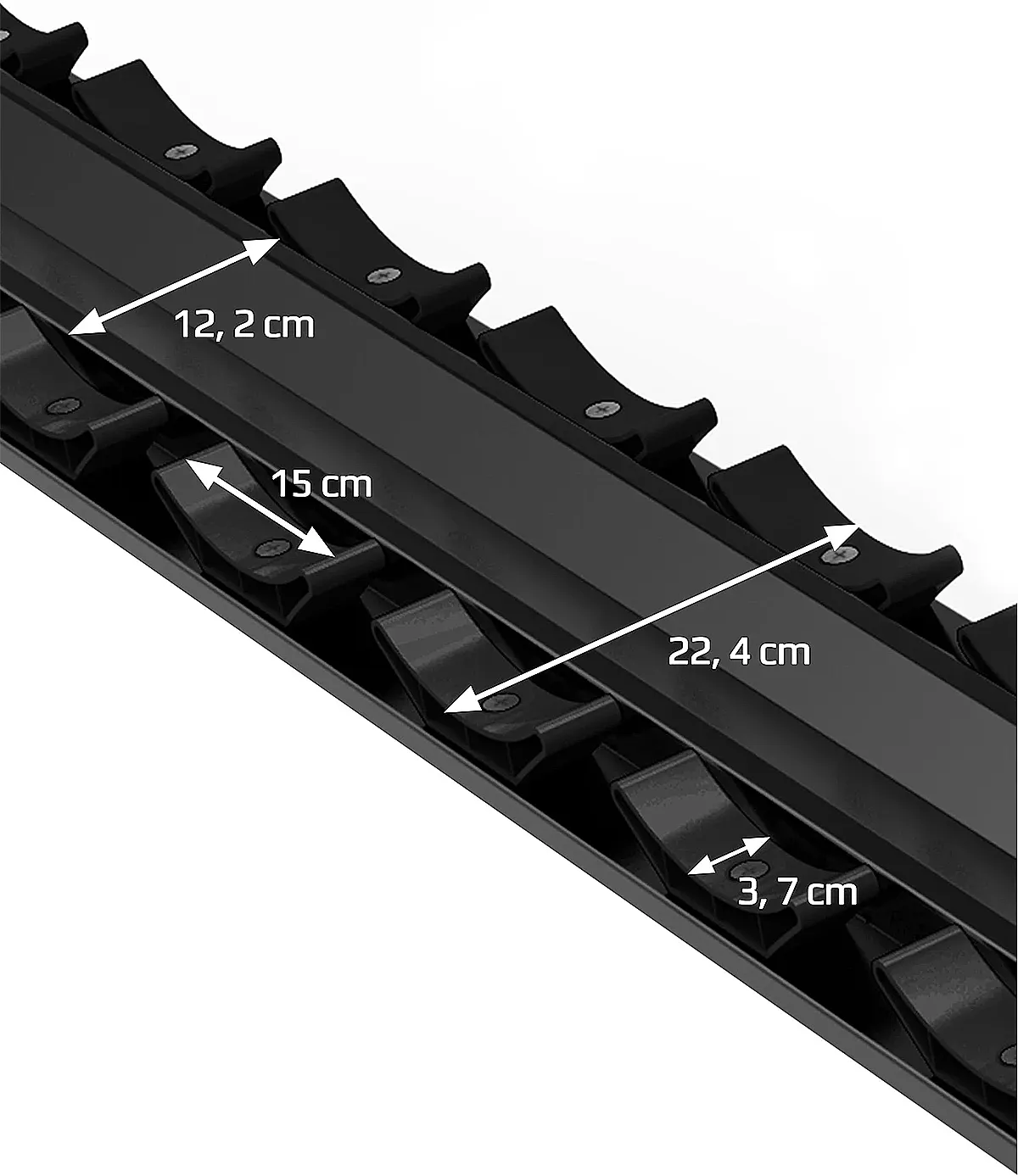 Die Halbschalen bieten optimale Führung für runde Kurzhanteln und sorgen für ein sauberes, professionelles Erscheinungsbild im Trainingsraum.