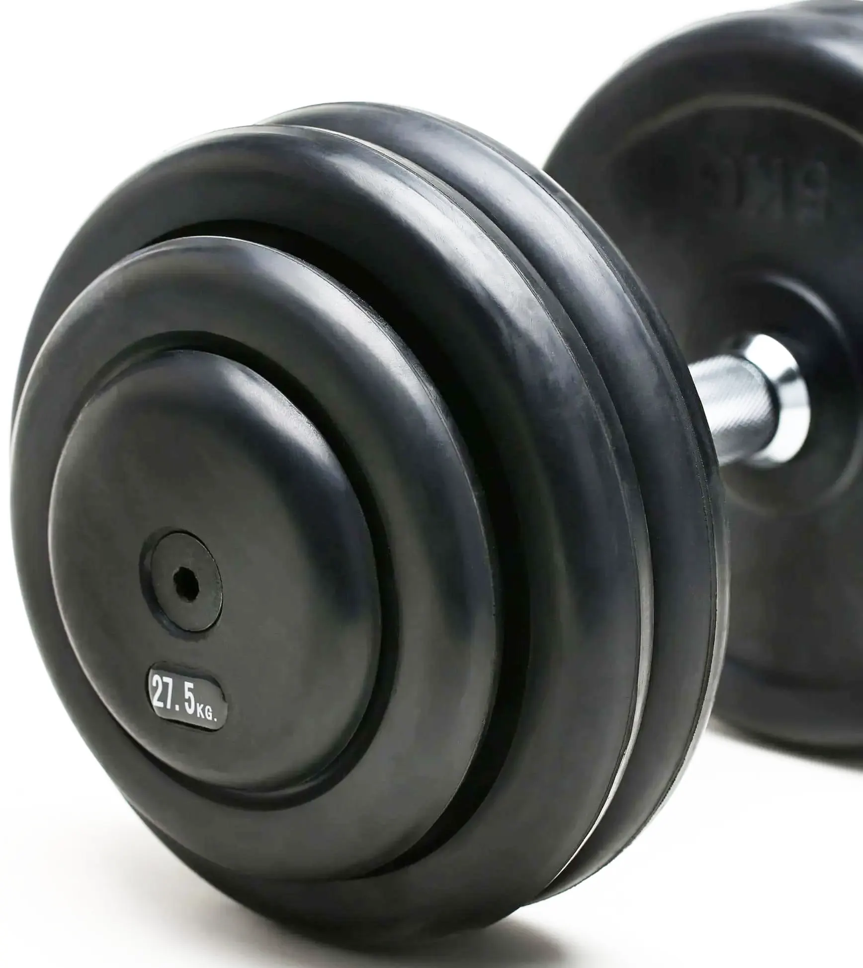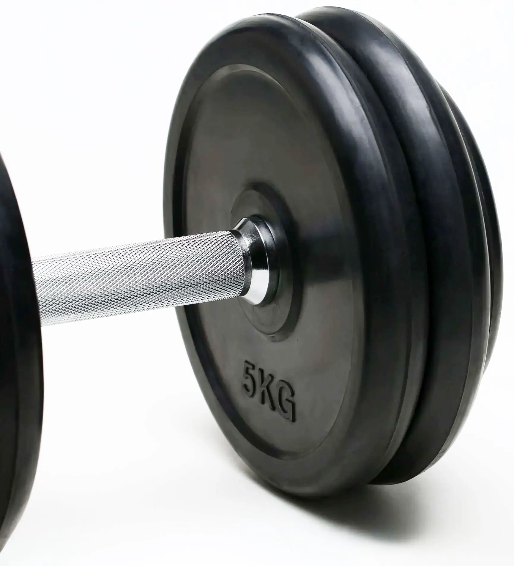 Gummiummantelte Hantelscheiben: Der massive Gusseisenkern ist mit einer widerstandsfähigen Gummischicht ummantelt – schützt Böden, minimiert Geräusche und sieht dabei richtig gut aus.