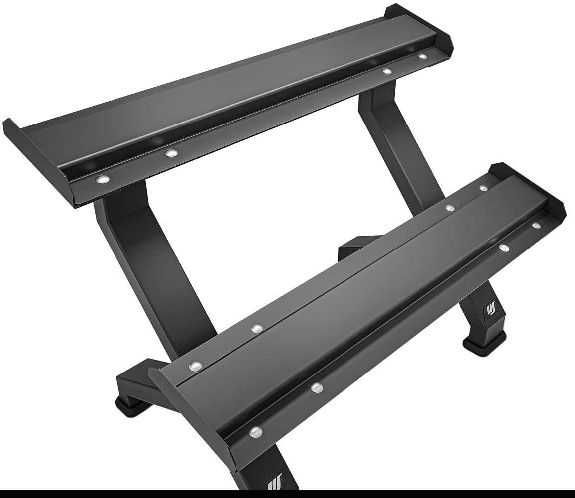 - Die speziell profilierte Ablage besteht aus 4 mm starkem Stahlblech, was für maximale Stabilität sorgt und ein schnelles sowie bequemes Ablegen und Entnehmen der Hanteln ermöglicht.