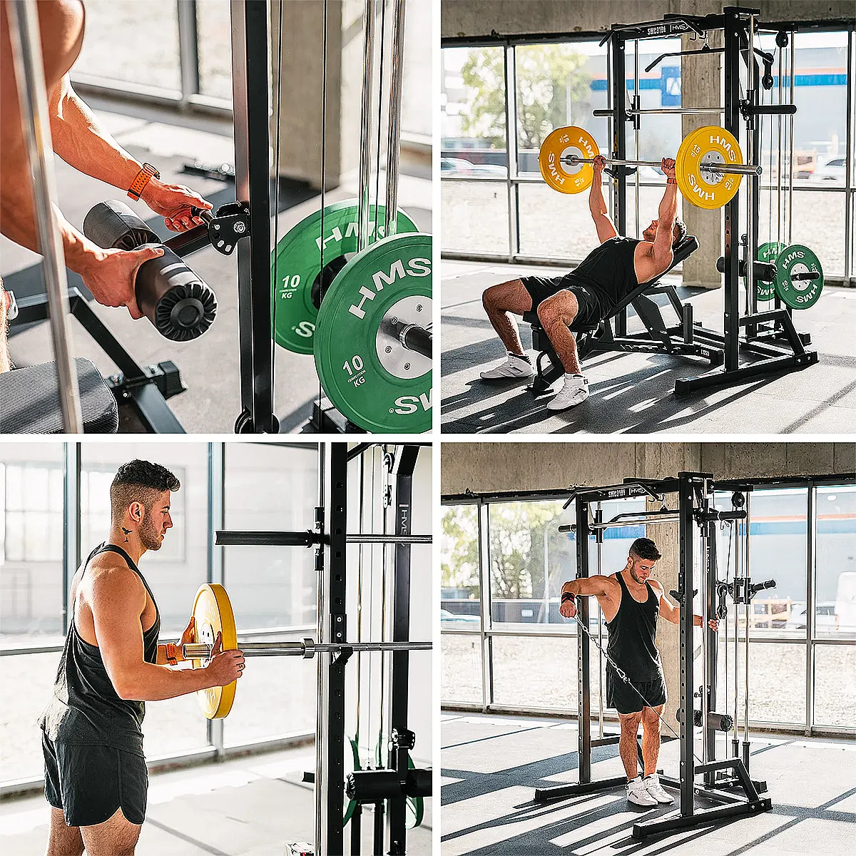 Die SWC3101 ist eine hochmoderne Kombi-Trainingsstation, die Smith-Maschine, Half-Rack und Plate-Loaded Kabelzug in einem Gerät vereint. Damit bietet sie alles, was ambitionierte Heimsportler, Personal Trainer und Studios mit begrenztem Platz benötigen: